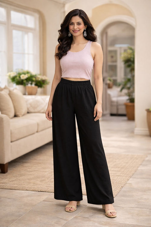 Black Rayon Straight Fit Flared Pant